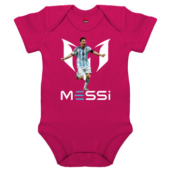 Λιονέλ Μέσι, Leo Messi, Βρεφικό φορμάκι μωρού, 0-18 μηνών, ΡΟΖ, 100% Organic Cotton, κοντομάνικο