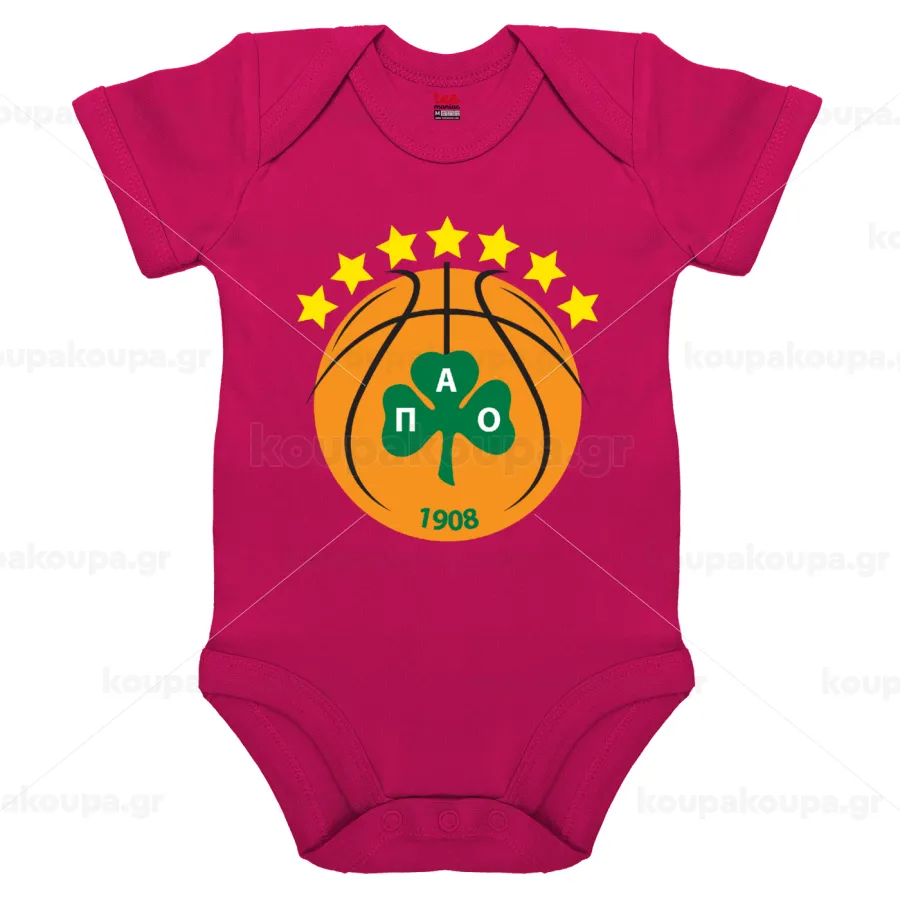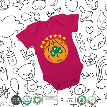 ΠΑΟ BC, Βρεφικό φορμάκι μωρού, 0-18 μηνών, ΡΟΖ, 100% Organic Cotton, κοντομάνικο