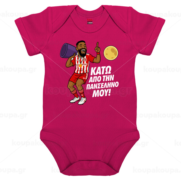 Ροντινέι, "ΚΑΤΩ ΑΠΟ ΤΗΝ ΠΑΝΣΕΛΗΝΟ ΜΟΥ!", Βρεφικό φορμάκι μωρού, 0-18 μηνών, ΡΟΖ, 100% Organic Cotton, κοντομάνικο