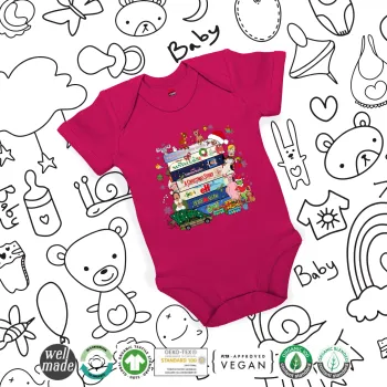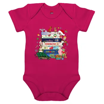 Xmas Classic movies, Βρεφικό φορμάκι μωρού, 0-18 μηνών, ΡΟΖ, 100% Organic Cotton, κοντομάνικο