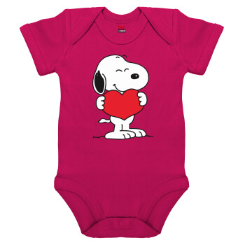 Snoopy takemy heart, Βρεφικό φορμάκι μωρού, 0-18 μηνών, ΡΟΖ, 100% Organic Cotton, κοντομάνικο