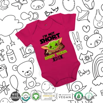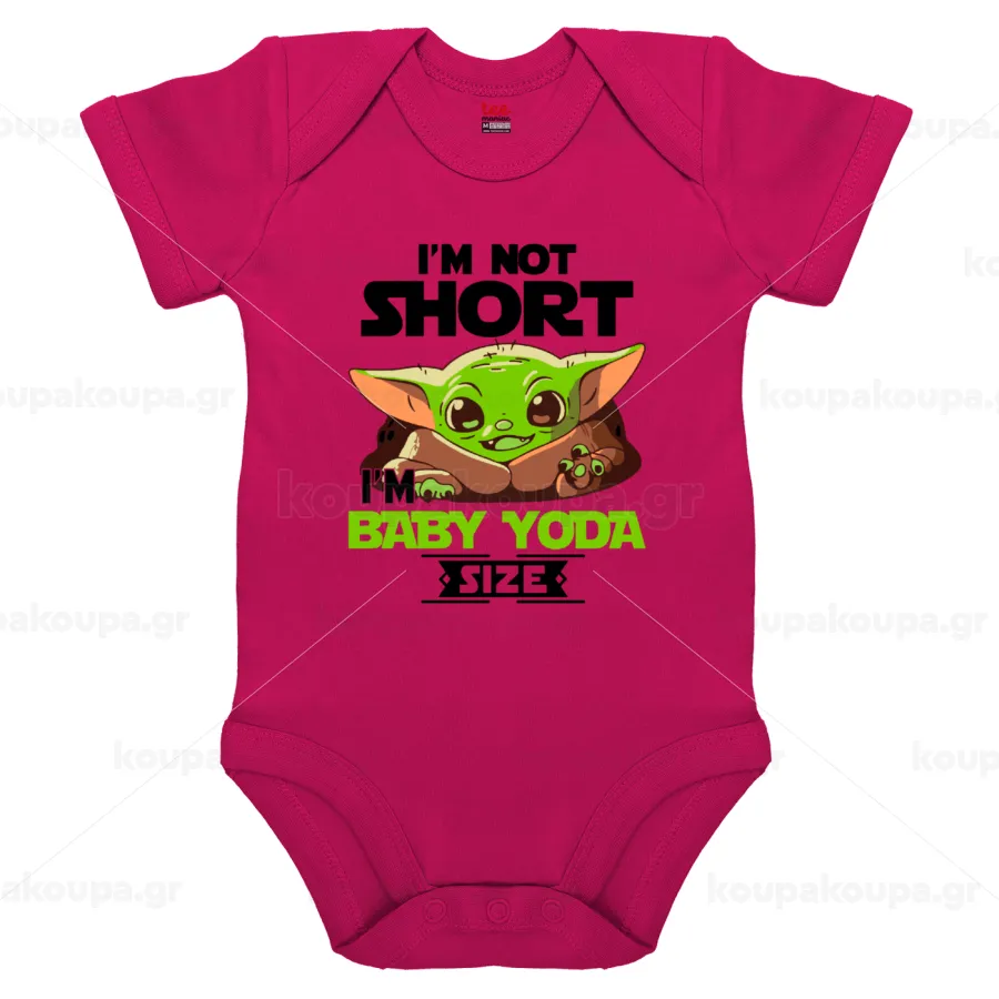 I'm not short, i'm Baby Yoda size, Βρεφικό φορμάκι μωρού, 0-18 μηνών, ΡΟΖ, 100% Organic Cotton, κοντομάνικο