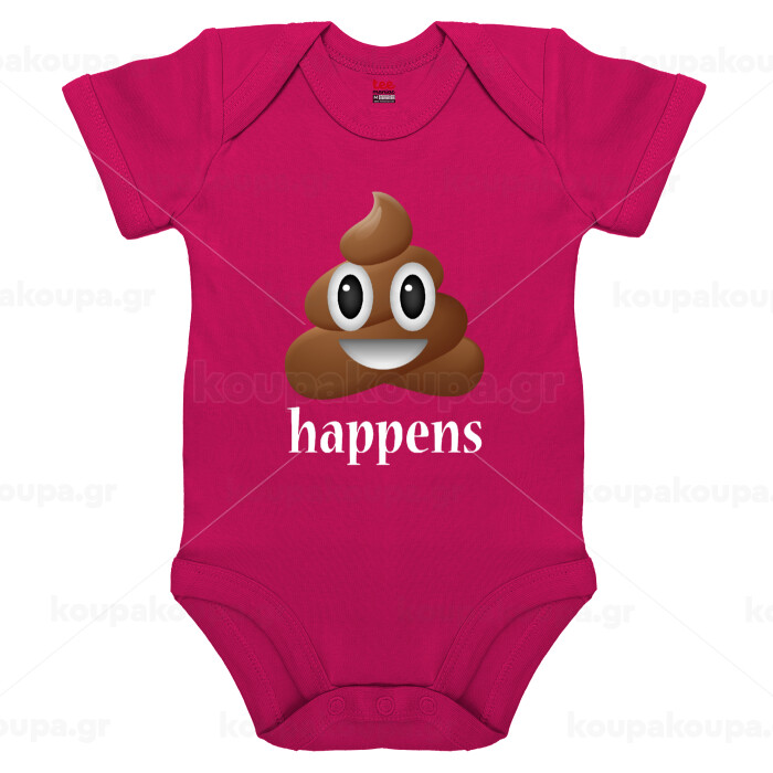 Shit Happens, Βρεφικό φορμάκι μωρού, 0-18 μηνών, ΡΟΖ, 100% Organic Cotton, κοντομάνικο