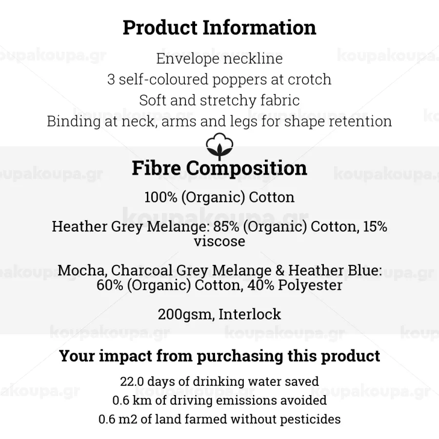 Υλικό: 100% Οργανικό Βαμβάκι, ring-spun και combed για απαλή υφή