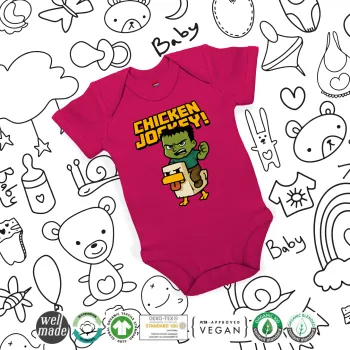 Chicken Jockey, Βρεφικό φορμάκι μωρού, 0-18 μηνών, ΡΟΖ, 100% Organic Cotton, κοντομάνικο