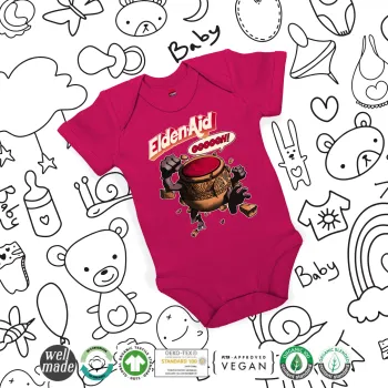 Elden-Aid, Elden Ring inspired , Βρεφικό φορμάκι μωρού, 0-18 μηνών, ΡΟΖ, 100% Organic Cotton, κοντομάνικο