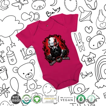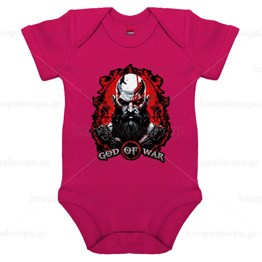 God of war, Βρεφικό φορμάκι μωρού, 0-18 μηνών, ΡΟΖ, 100% Organic Cotton, κοντομάνικο