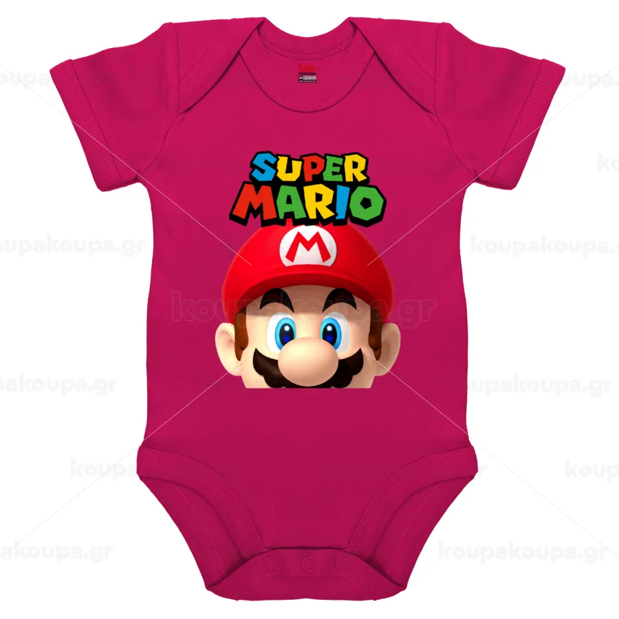 Super mario, Βρεφικό φορμάκι μωρού, 0-18 μηνών, ΡΟΖ, 100% Organic Cotton, κοντομάνικο