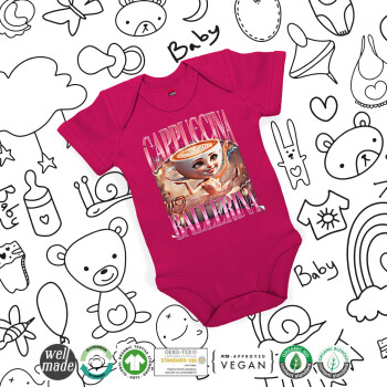 BALLERINA CAPUCHINA FUNK, Βρεφικό φορμάκι μωρού, 0-18 μηνών, ΡΟΖ, 100% Organic Cotton, κοντομάνικο
