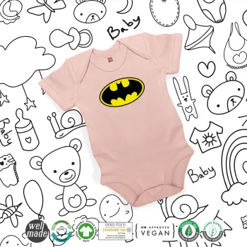 Batman, Βρεφικό φορμάκι μωρού, 0-18 μηνών, ΡΟΖ POWDER, 100% Organic Cotton, κοντομάνικο