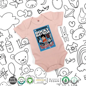 Rocky Balboa, Βρεφικό φορμάκι μωρού, 0-18 μηνών, ΡΟΖ POWDER, 100% Organic Cotton, κοντομάνικο