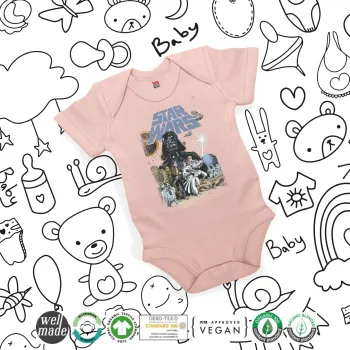 Star Wars, Βρεφικό φορμάκι μωρού, 0-18 μηνών, ΡΟΖ POWDER, 100% Organic Cotton, κοντομάνικο