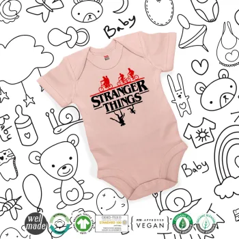 Stranger Things upside down, Βρεφικό φορμάκι μωρού, 0-18 μηνών, ΡΟΖ POWDER, 100% Organic Cotton, κοντομάνικο