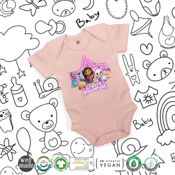 Gabby Dollhouse (ΤΟ ΚΟΥΚΛΟΣΠΙΤΟ ΤΗΣ ΓΚΑΜΠΙ), Βρεφικό φορμάκι μωρού, 0-18 μηνών, ΡΟΖ POWDER, 100% Organic Cotton, κοντομάνικο