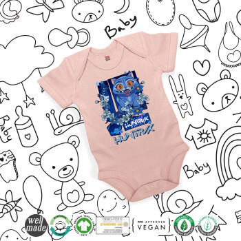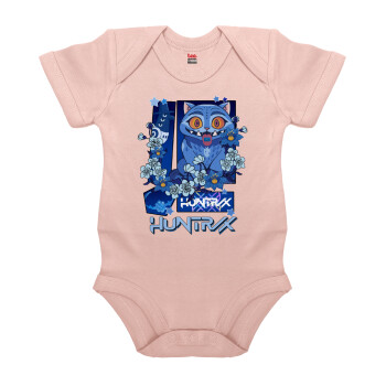 Huntrix Derpy the blue tiger, Βρεφικό φορμάκι μωρού, 0-18 μηνών, ΡΟΖ POWDER, 100% Organic Cotton, κοντομάνικο