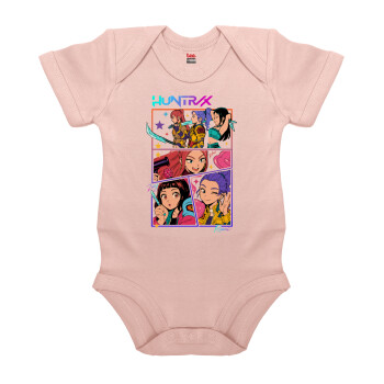 Huntrix Kpop Girls, Βρεφικό φορμάκι μωρού, 0-18 μηνών, ΡΟΖ POWDER, 100% Organic Cotton, κοντομάνικο