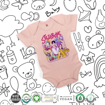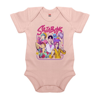 Huntrix Saja Boys, Βρεφικό φορμάκι μωρού, 0-18 μηνών, ΡΟΖ POWDER, 100% Organic Cotton, κοντομάνικο