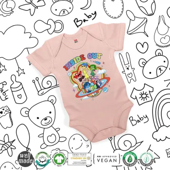 Inside Out, Βρεφικό φορμάκι μωρού, 0-18 μηνών, ΡΟΖ POWDER, 100% Organic Cotton, κοντομάνικο