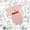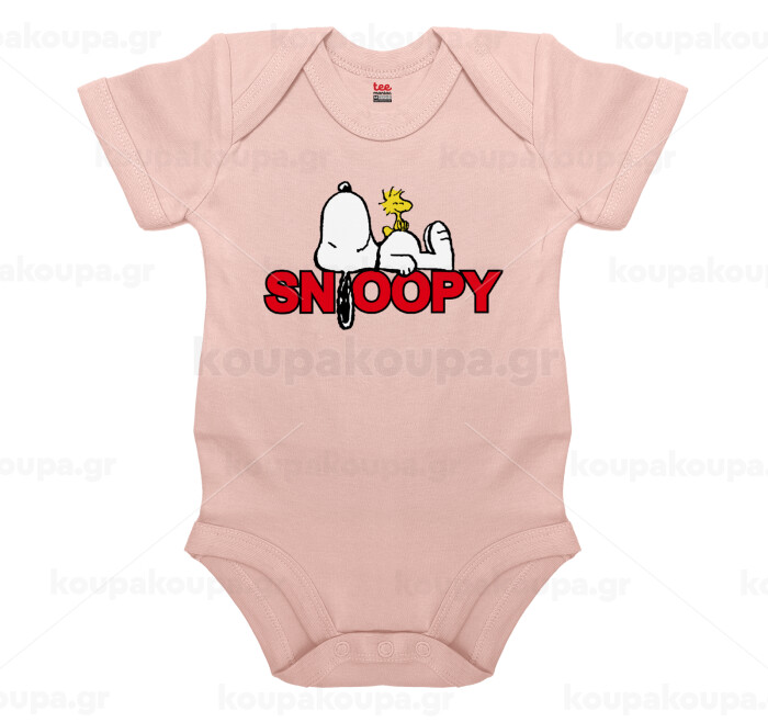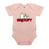 Snoopy sleep, Βρεφικό φορμάκι μωρού, 0-18 μηνών, ΡΟΖ POWDER, 100% Organic Cotton, κοντομάνικο