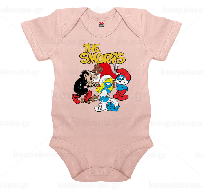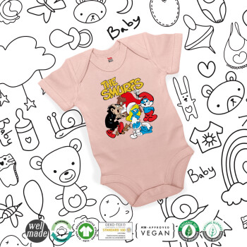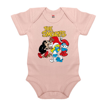 Τα στρουμφάκια, Βρεφικό φορμάκι μωρού, 0-18 μηνών, ΡΟΖ POWDER, 100% Organic Cotton, κοντομάνικο