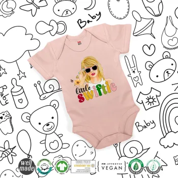 Little Swiftie, Βρεφικό φορμάκι μωρού, 0-18 μηνών, ΡΟΖ POWDER, 100% Organic Cotton, κοντομάνικο