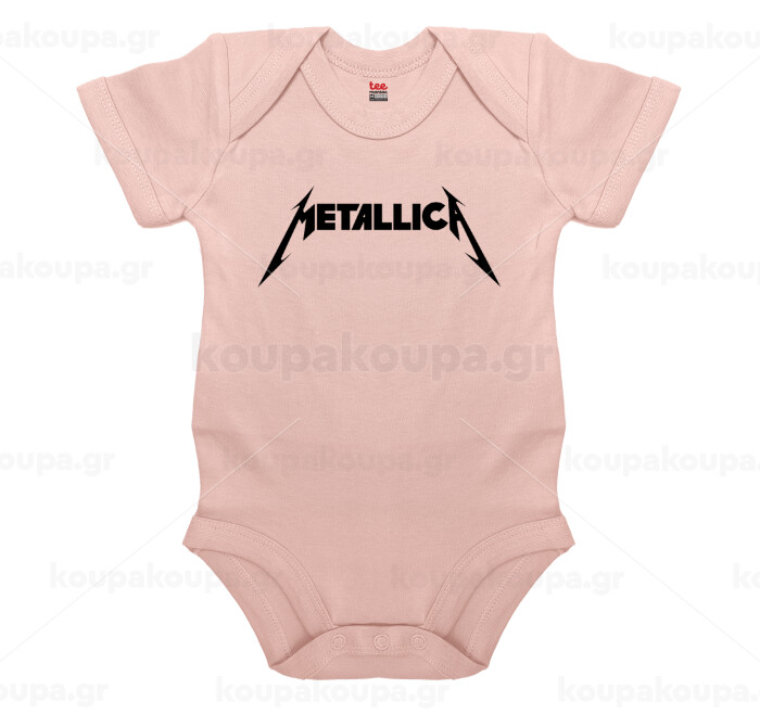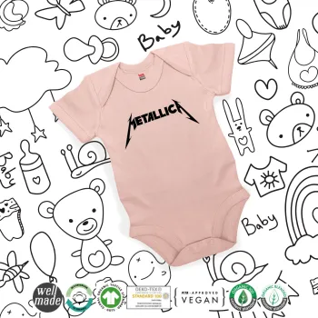 Metallica, Βρεφικό φορμάκι μωρού, 0-18 μηνών, ΡΟΖ POWDER, 100% Organic Cotton, κοντομάνικο