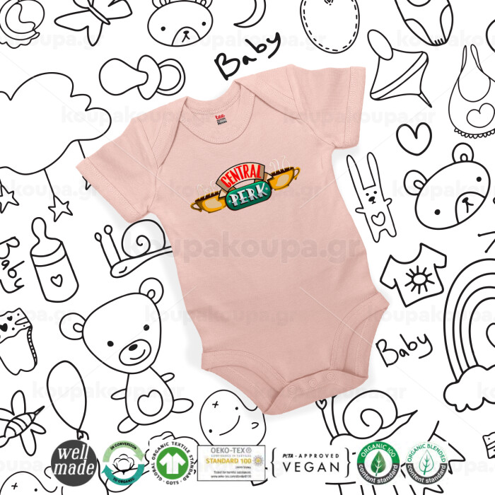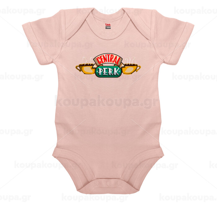 Central perk, Βρεφικό φορμάκι μωρού, 0-18 μηνών, ΡΟΖ POWDER, 100% Organic Cotton, κοντομάνικο