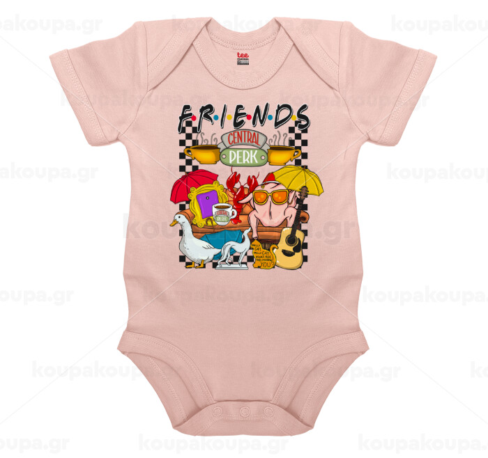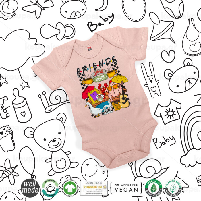 Τα φιλαράκια, Βρεφικό φορμάκι μωρού, 0-18 μηνών, ΡΟΖ POWDER, 100% Organic Cotton, κοντομάνικο