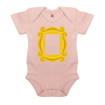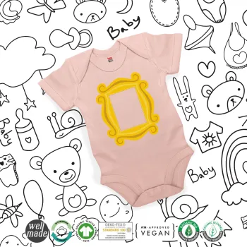 Friends frame, Βρεφικό φορμάκι μωρού, 0-18 μηνών, ΡΟΖ POWDER, 100% Organic Cotton, κοντομάνικο