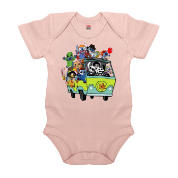 Stitch Halloween scooby car, Βρεφικό φορμάκι μωρού, 0-18 μηνών, ΡΟΖ POWDER, 100% Organic Cotton, κοντομάνικο