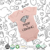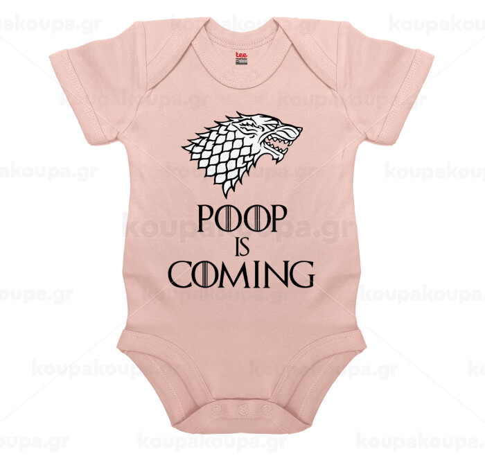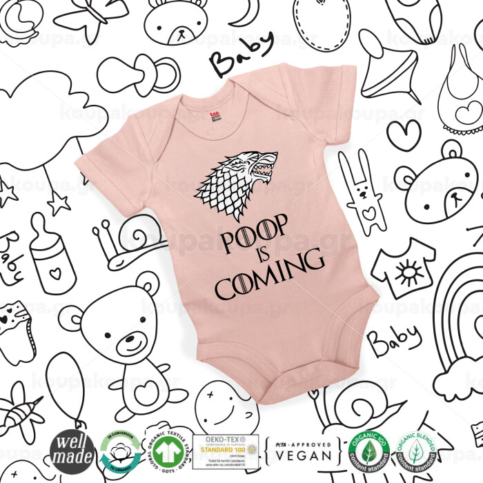 POOP Is Coming, Βρεφικό φορμάκι μωρού, 0-18 μηνών, ΡΟΖ POWDER, 100% Organic Cotton, κοντομάνικο