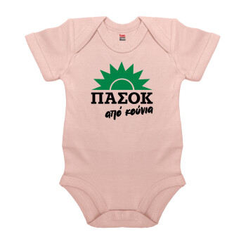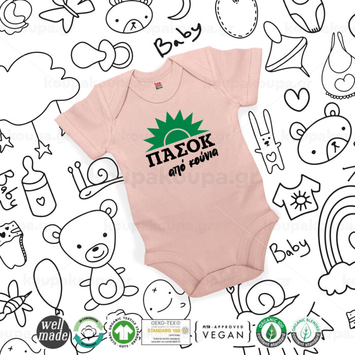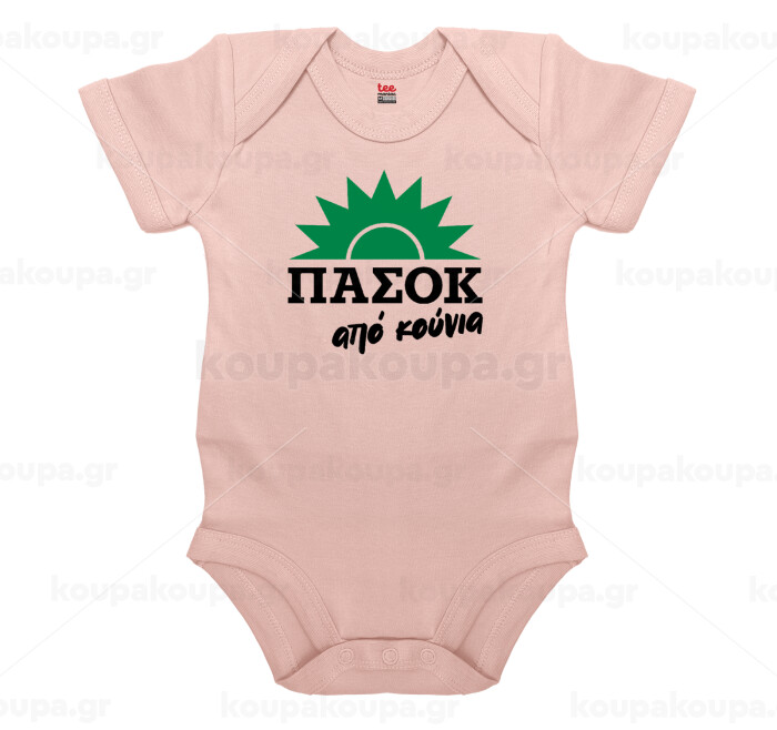 ΠΑΣΟΚ από κούνια, Βρεφικό φορμάκι μωρού, 0-18 μηνών, ΡΟΖ POWDER, 100% Organic Cotton, κοντομάνικο
