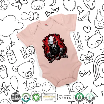 God of war, Βρεφικό φορμάκι μωρού, 0-18 μηνών, ΡΟΖ POWDER, 100% Organic Cotton, κοντομάνικο