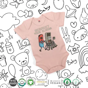 Respect your Elders, Βρεφικό φορμάκι μωρού, 0-18 μηνών, ΡΟΖ POWDER, 100% Organic Cotton, κοντομάνικο