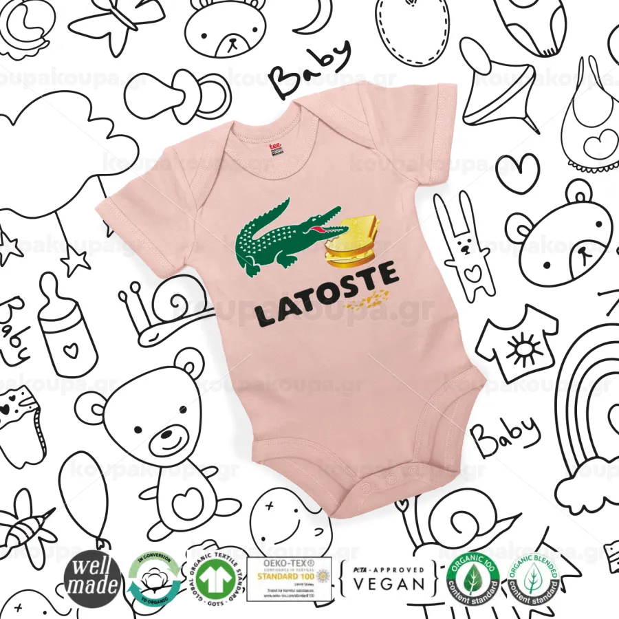 Latoste, Βρεφικό φορμάκι μωρού, 0-18 μηνών, ΡΟΖ POWDER, 100% Organic Cotton, κοντομάνικο