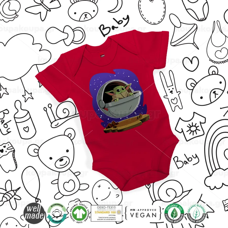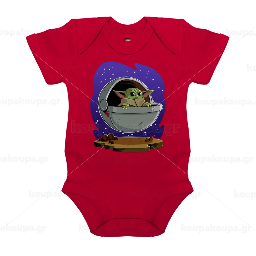 Baby Yoda mandalorian, Βρεφικό φορμάκι μωρού, ΚΟΚΚΙΝΟ, 100% Organic Cotton, κοντομάνικο