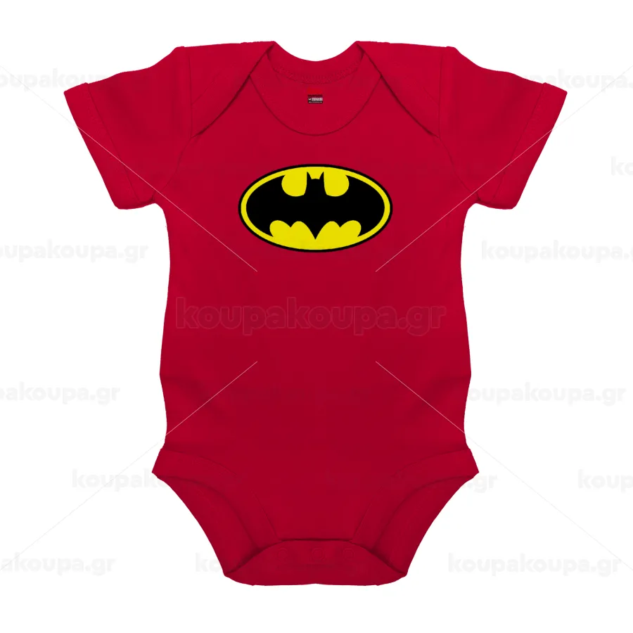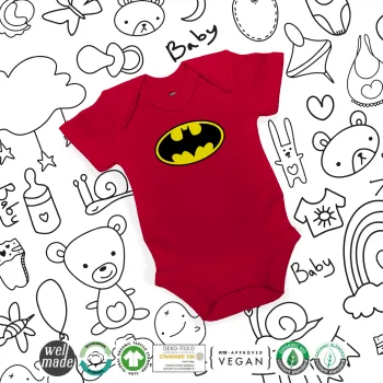 Batman, Βρεφικό φορμάκι μωρού, ΚΟΚΚΙΝΟ, 100% Organic Cotton, κοντομάνικο