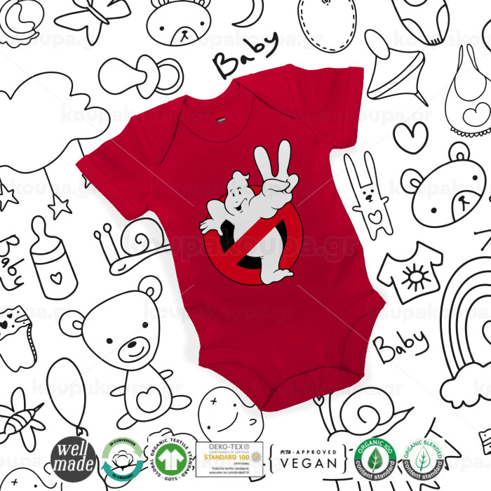 Ghostbusters, Βρεφικό φορμάκι μωρού, ΚΟΚΚΙΝΟ, 100% Organic Cotton, κοντομάνικο