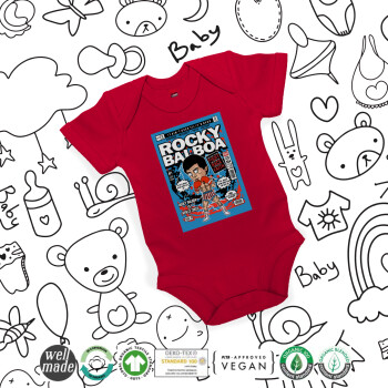 Rocky Balboa, Βρεφικό φορμάκι μωρού, ΚΟΚΚΙΝΟ, 100% Organic Cotton, κοντομάνικο