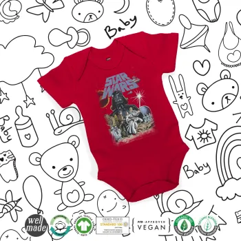 Star Wars, Βρεφικό φορμάκι μωρού, ΚΟΚΚΙΝΟ, 100% Organic Cotton, κοντομάνικο