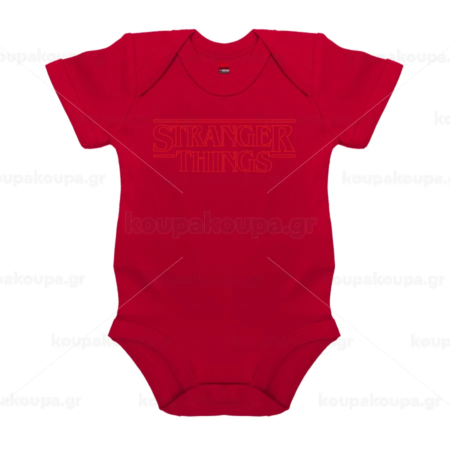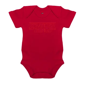 Stranger Things Logo, Βρεφικό φορμάκι μωρού, ΚΟΚΚΙΝΟ, 100% Organic Cotton, κοντομάνικο