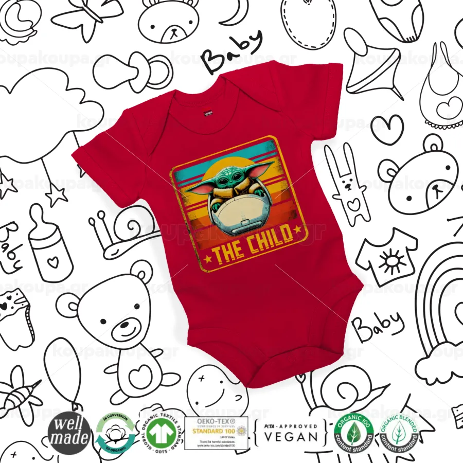 The Child, Βρεφικό φορμάκι μωρού, ΚΟΚΚΙΝΟ, 100% Organic Cotton, κοντομάνικο