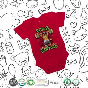 Garfield Fitness, Βρεφικό φορμάκι μωρού, ΚΟΚΚΙΝΟ, 100% Organic Cotton, κοντομάνικο