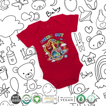 Inside Out, Βρεφικό φορμάκι μωρού, ΚΟΚΚΙΝΟ, 100% Organic Cotton, κοντομάνικο