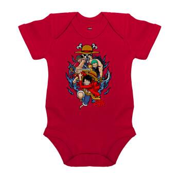 One Piece, Βρεφικό φορμάκι μωρού, ΚΟΚΚΙΝΟ, 100% Organic Cotton, κοντομάνικο