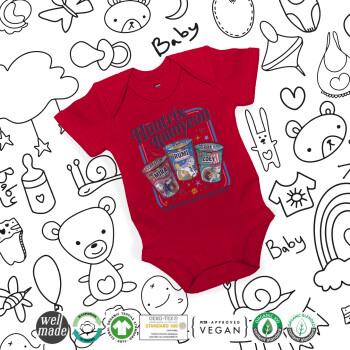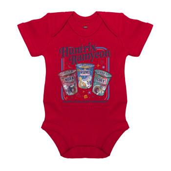 Ramyeon Huntrix, Βρεφικό φορμάκι μωρού, ΚΟΚΚΙΝΟ, 100% Organic Cotton, κοντομάνικο