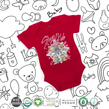 Stray Kids Pink, Βρεφικό φορμάκι μωρού, ΚΟΚΚΙΝΟ, 100% Organic Cotton, κοντομάνικο
