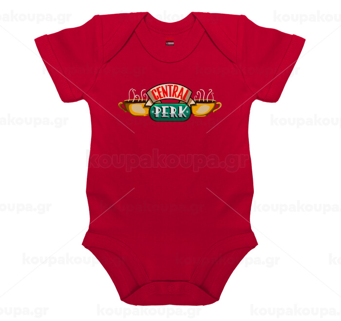 Central perk, Βρεφικό φορμάκι μωρού, ΚΟΚΚΙΝΟ, 100% Organic Cotton, κοντομάνικο