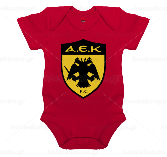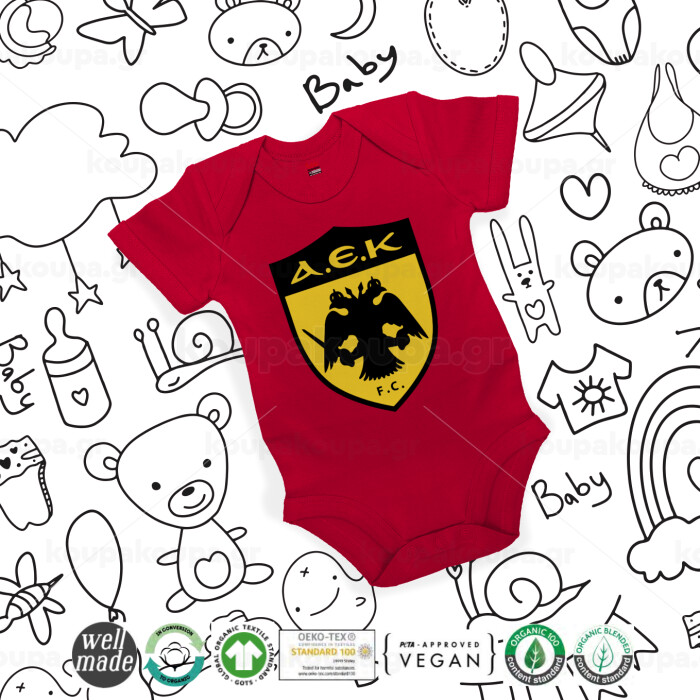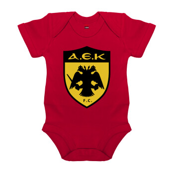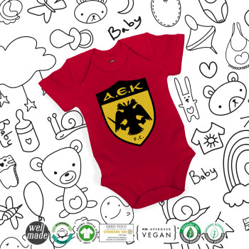 ΑΕΚ, Βρεφικό φορμάκι μωρού, ΚΟΚΚΙΝΟ, 100% Organic Cotton, κοντομάνικο