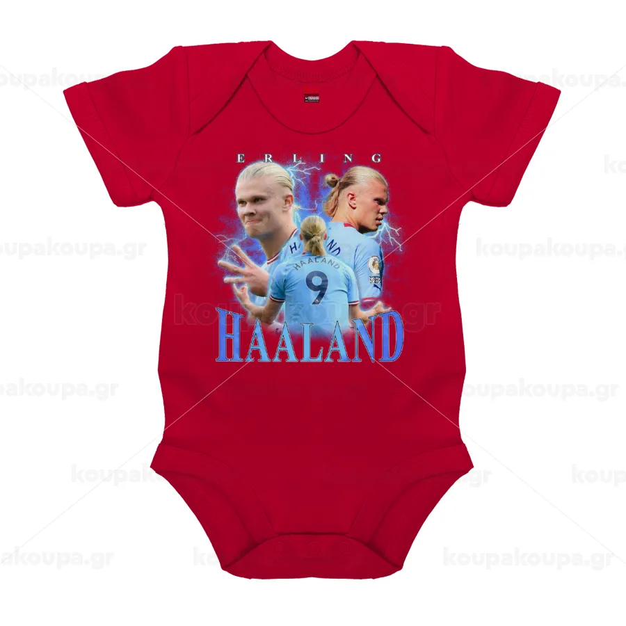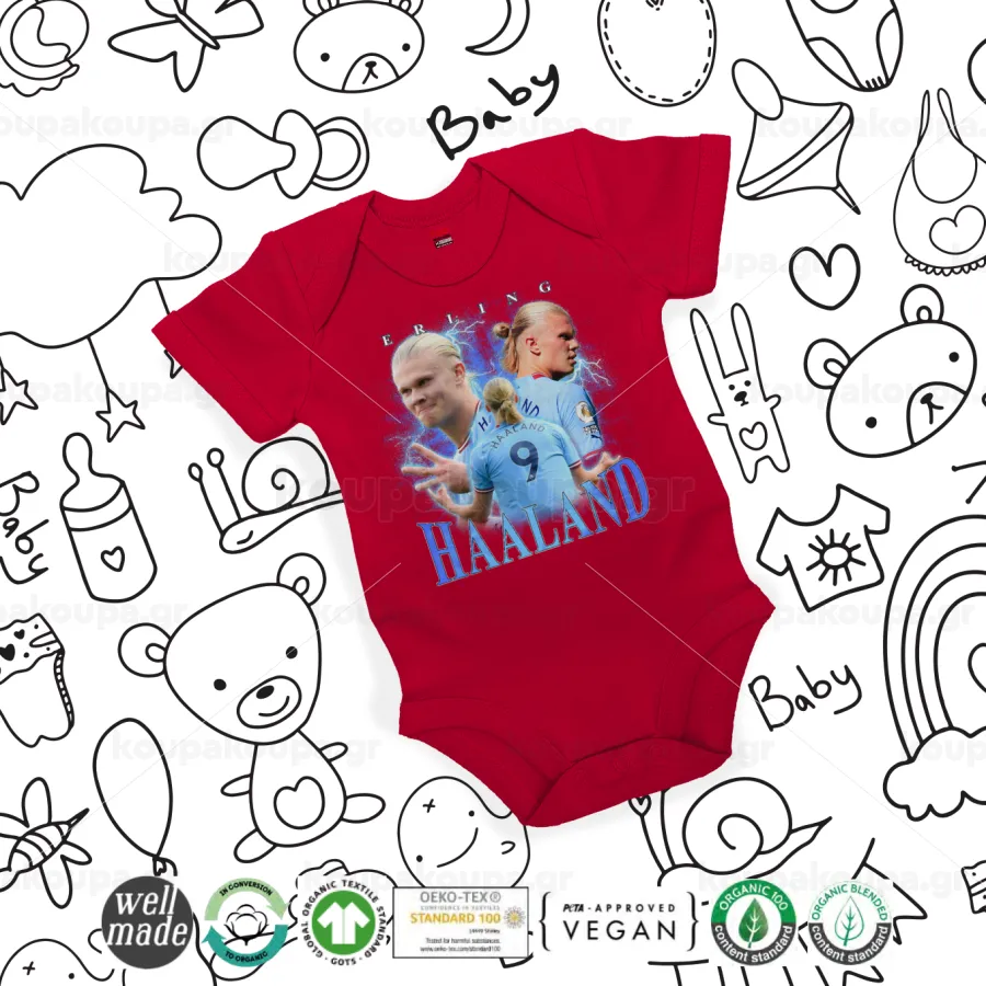 Erling Haaland, Βρεφικό φορμάκι μωρού, ΚΟΚΚΙΝΟ, 100% Organic Cotton, κοντομάνικο